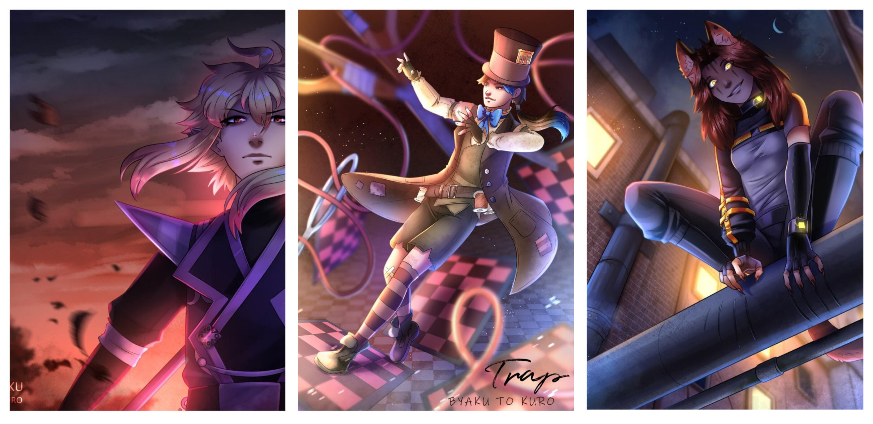 Delivering worldwide (except USA)! Get all my standard merch (foil prints, artbooks, sticker, ...) or B-Grade Items and custom keychains or standees of your own characters!